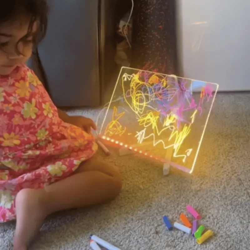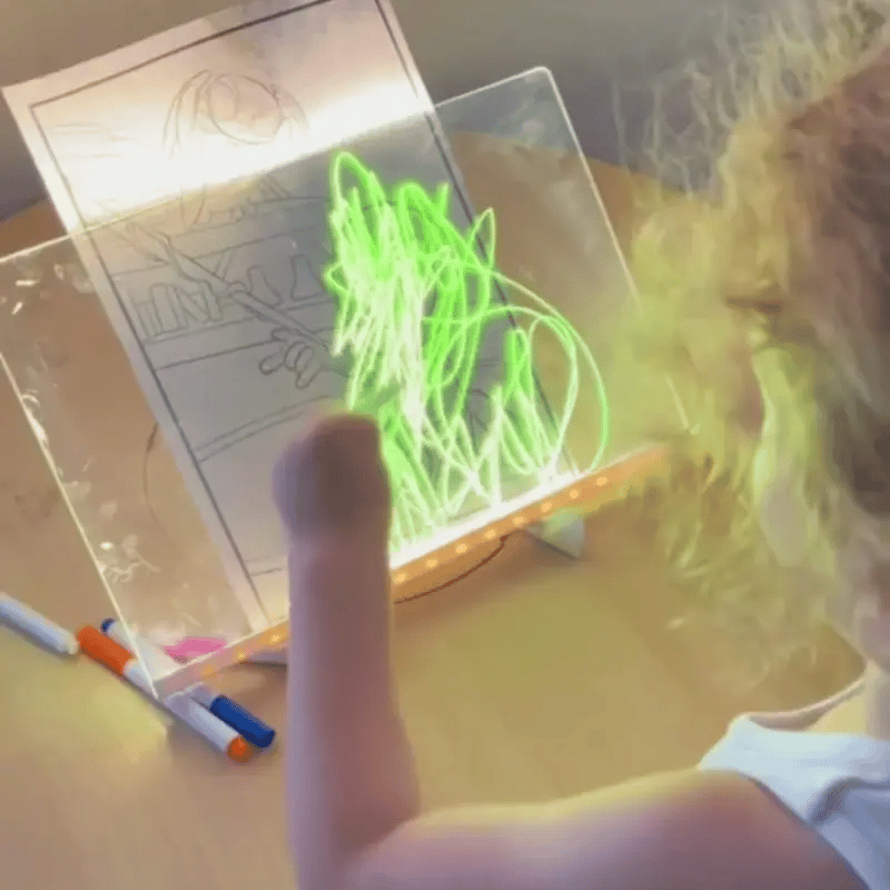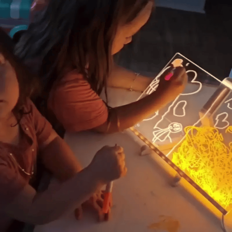 Grâce à ses stylos LED phosphorescents, la tablette leur permet de créer des dessins lumineux en toute sécurité.