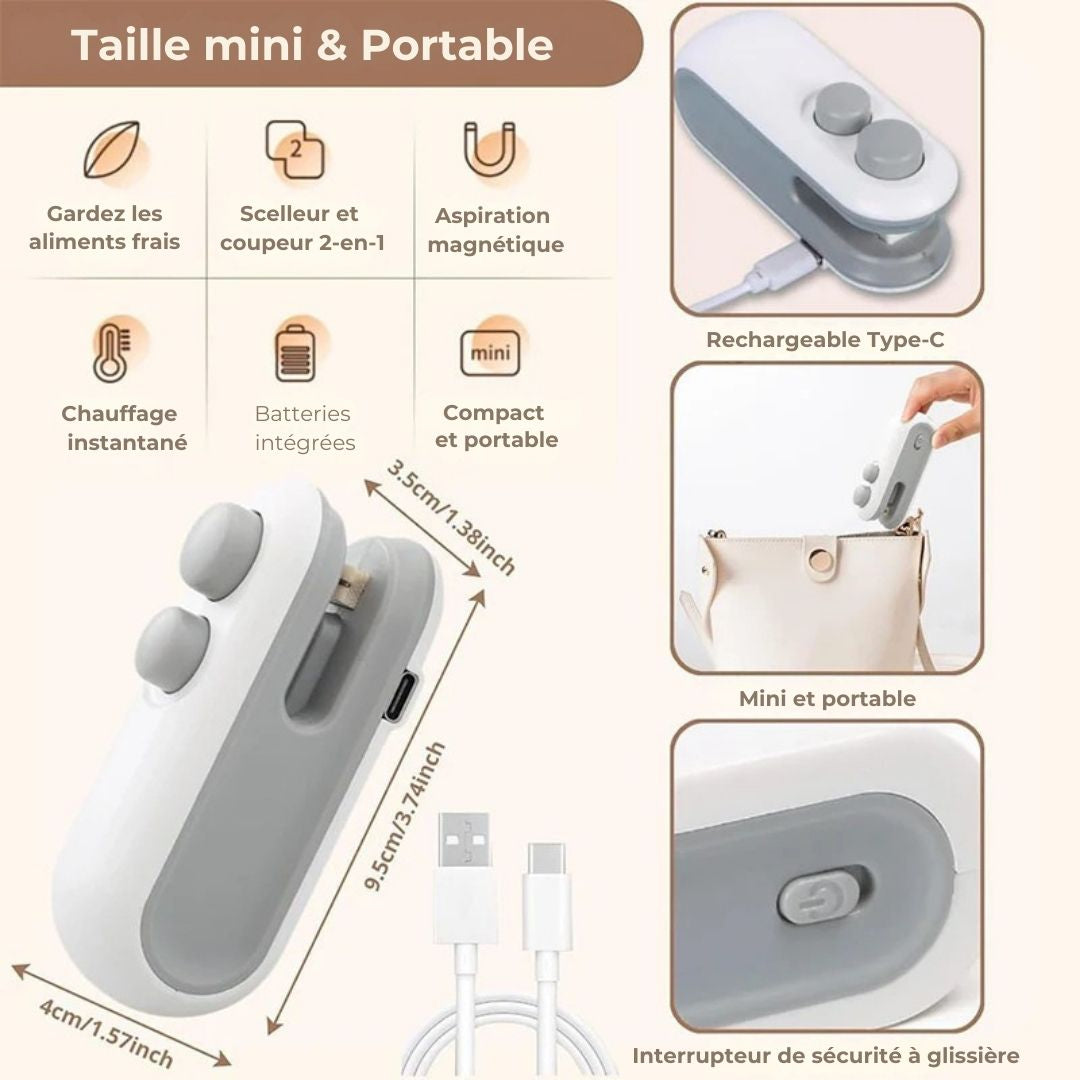 Ce scellant est conçu pour être compact et portable, ce qui le rend idéal pour les petits espaces ou pour l’emporter en voyage.