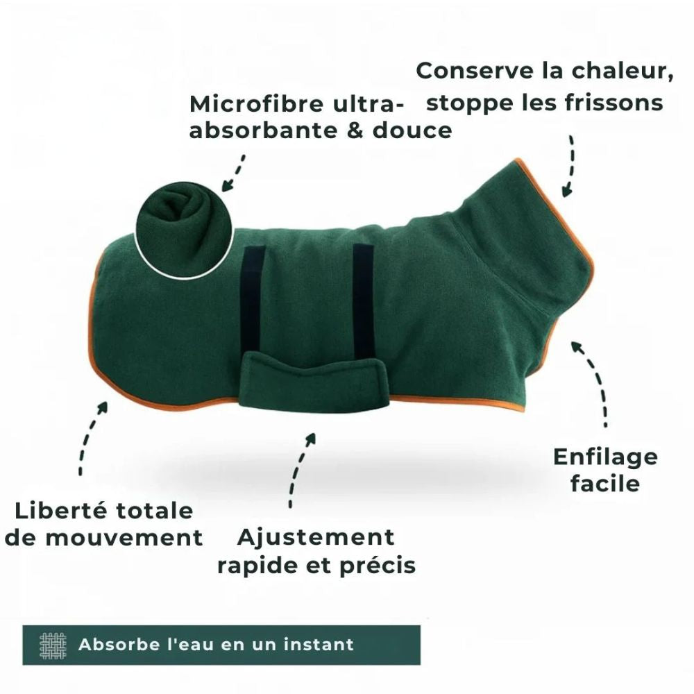 Votre chien se sentira immédiatement à l'aise, que ce soit après un bain ou lors d'une sortie par temps froid.