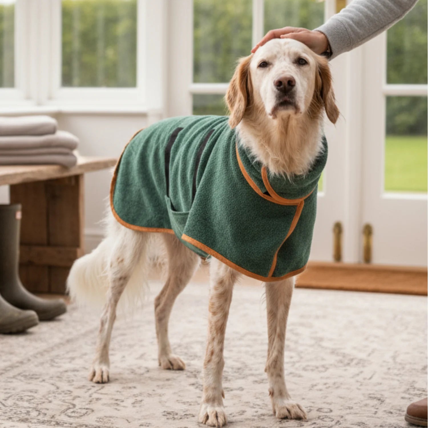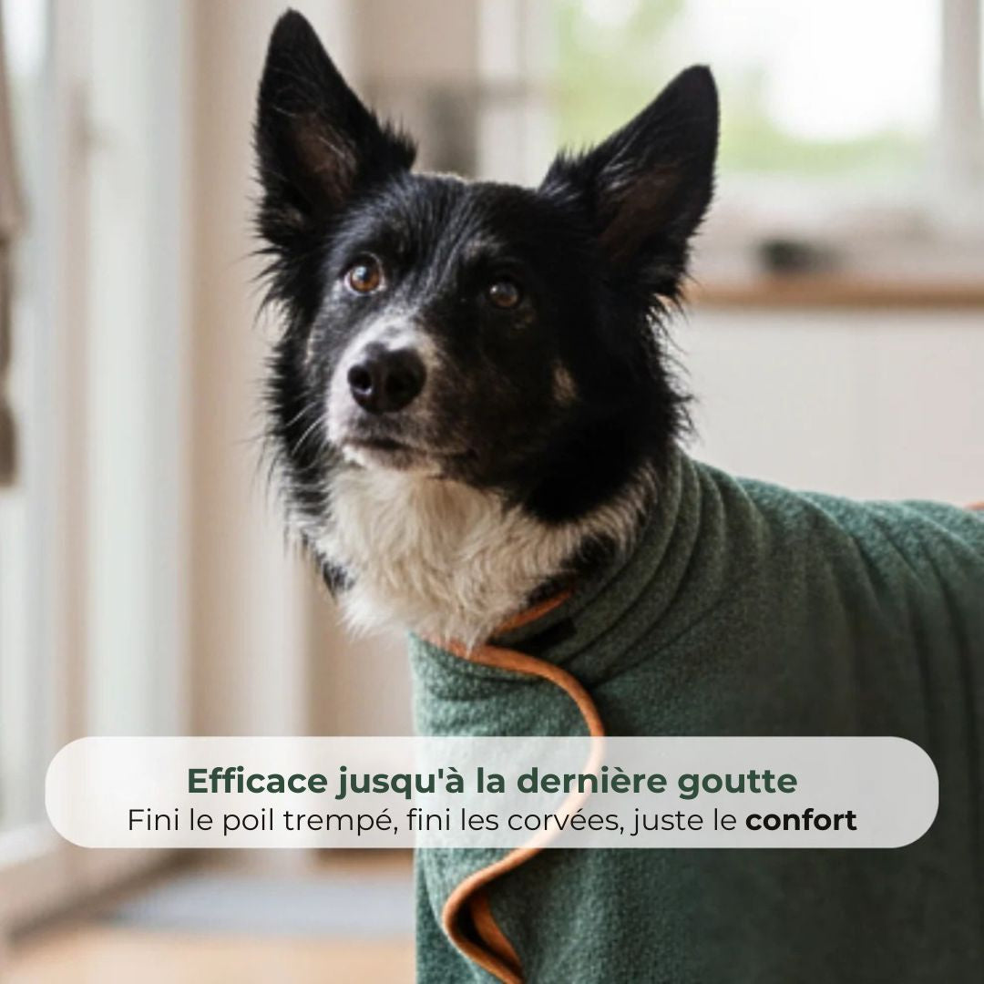 Fini les sols mouillés et les draps à changer ! Avec ce peignoir, votre chien reste à l’aise et au sec toute la journée.