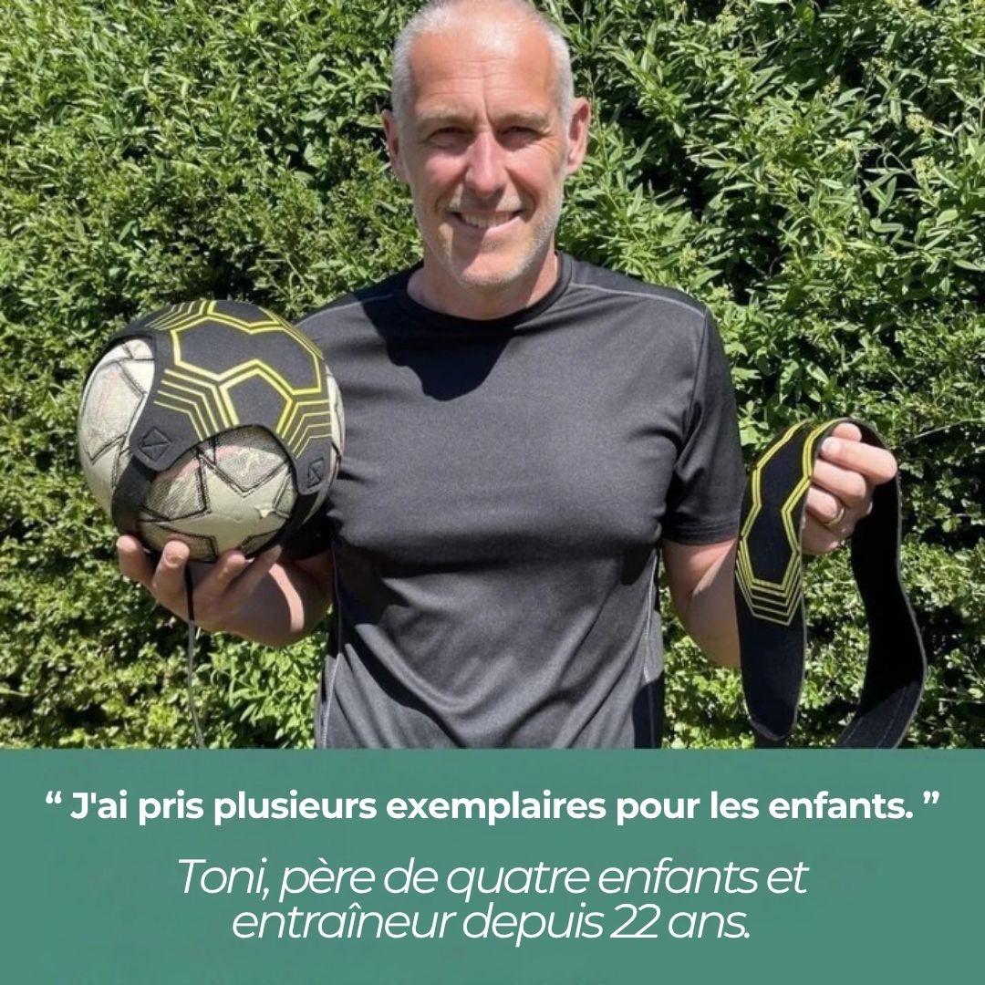 Grâce à son système de harnais et de corde élastique, le ballon revient automatiquement après chaque tir.