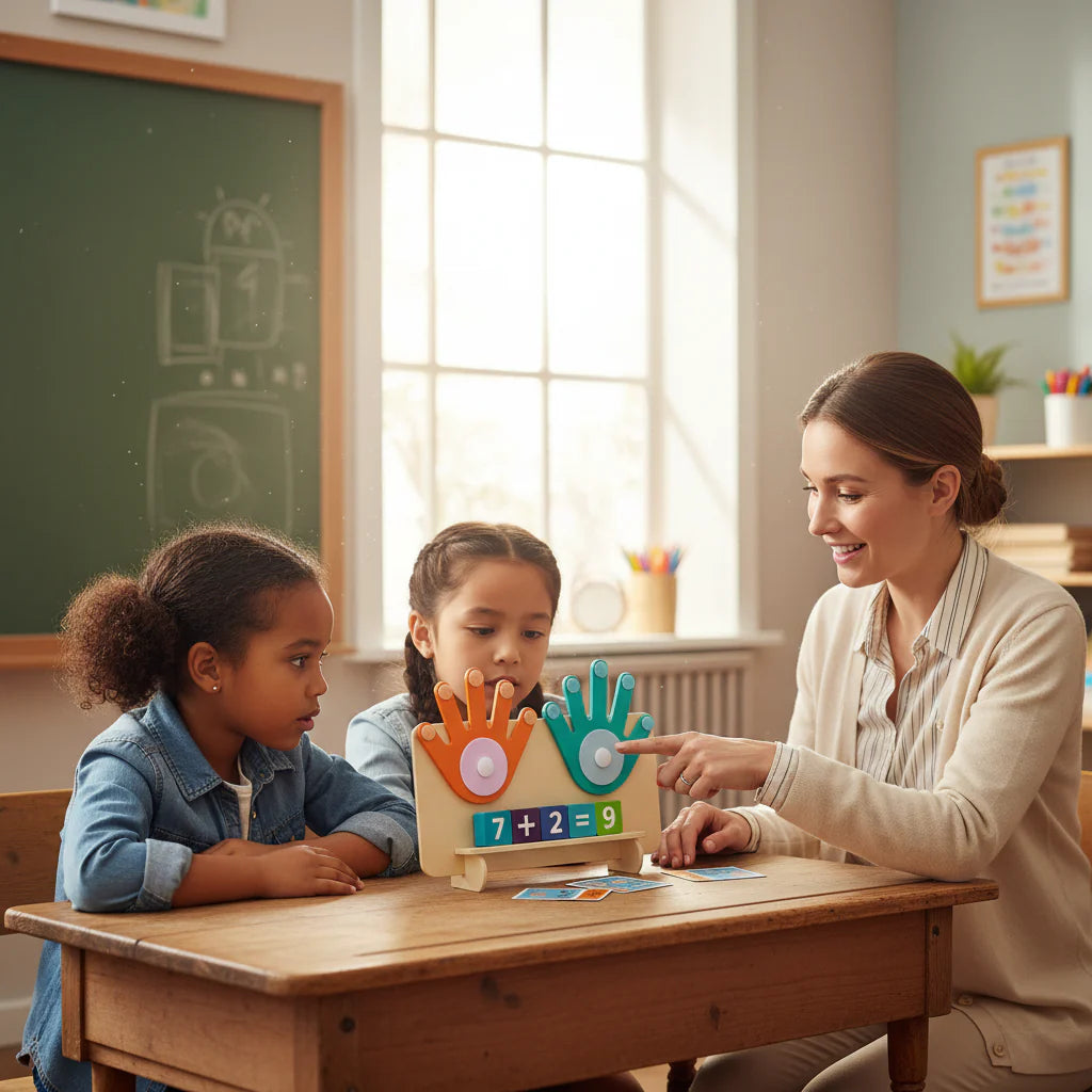Grâce à ses couleurs vives et son design en forme de main, cet outil attire naturellement la curiosité et rend les mathématiques plus accessibles.