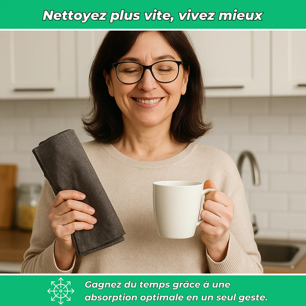 Évitez les rouleaux d’essuie-tout et les sprays coûteux. Ce chiffon réutilisable se lave facilement et conserve son efficacité lavage après lavage.