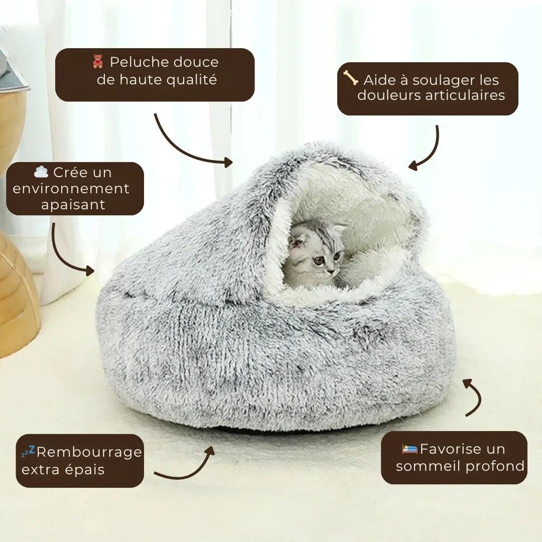 Ce panier au toucher doux et enveloppant devient vite le refuge préféré de votre animal. Il l’aide à se sentir en sécurité et à retrouver son calme.