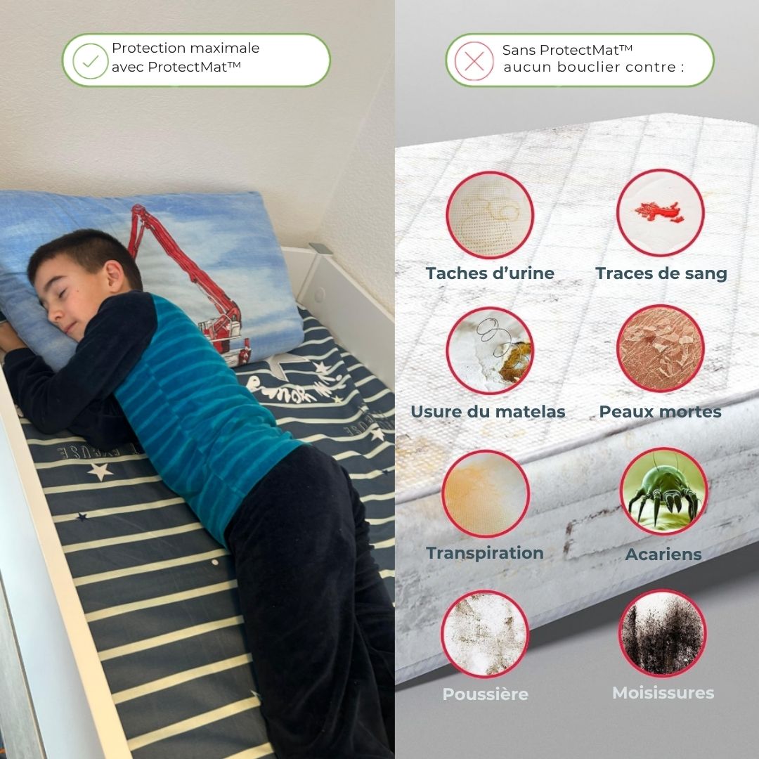 Grâce à ProtectKid™, toute la famille dort sereinement, sans réveils ni panique nocturne. Son tissu doux et silencieux le rend invisible et agréable à utiliser.