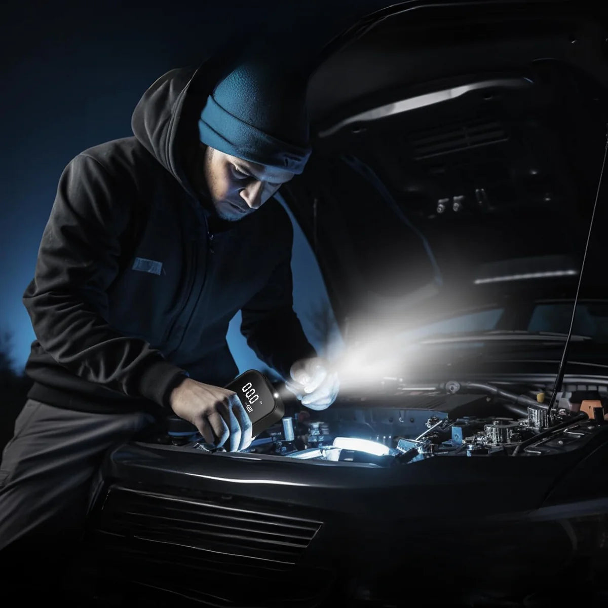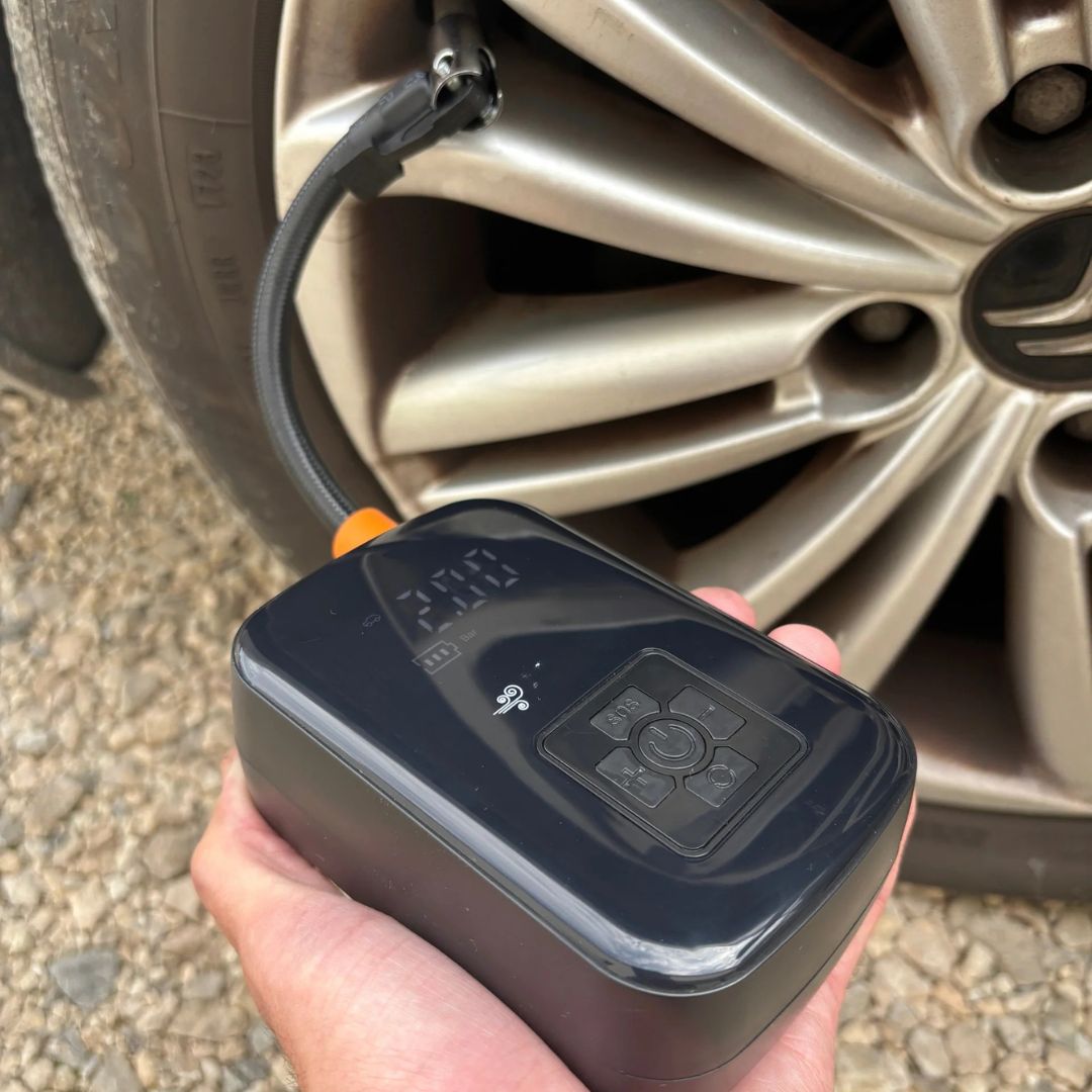 Emportez-le partout : son format compact (12 cm × 8 cm) se glisse dans votre cendrier ou boîte à gants. Appuyez sur le bouton ON/OFF, choisissez la pression souhaitée et observez l’écran : tout devient simple et sécurisé.