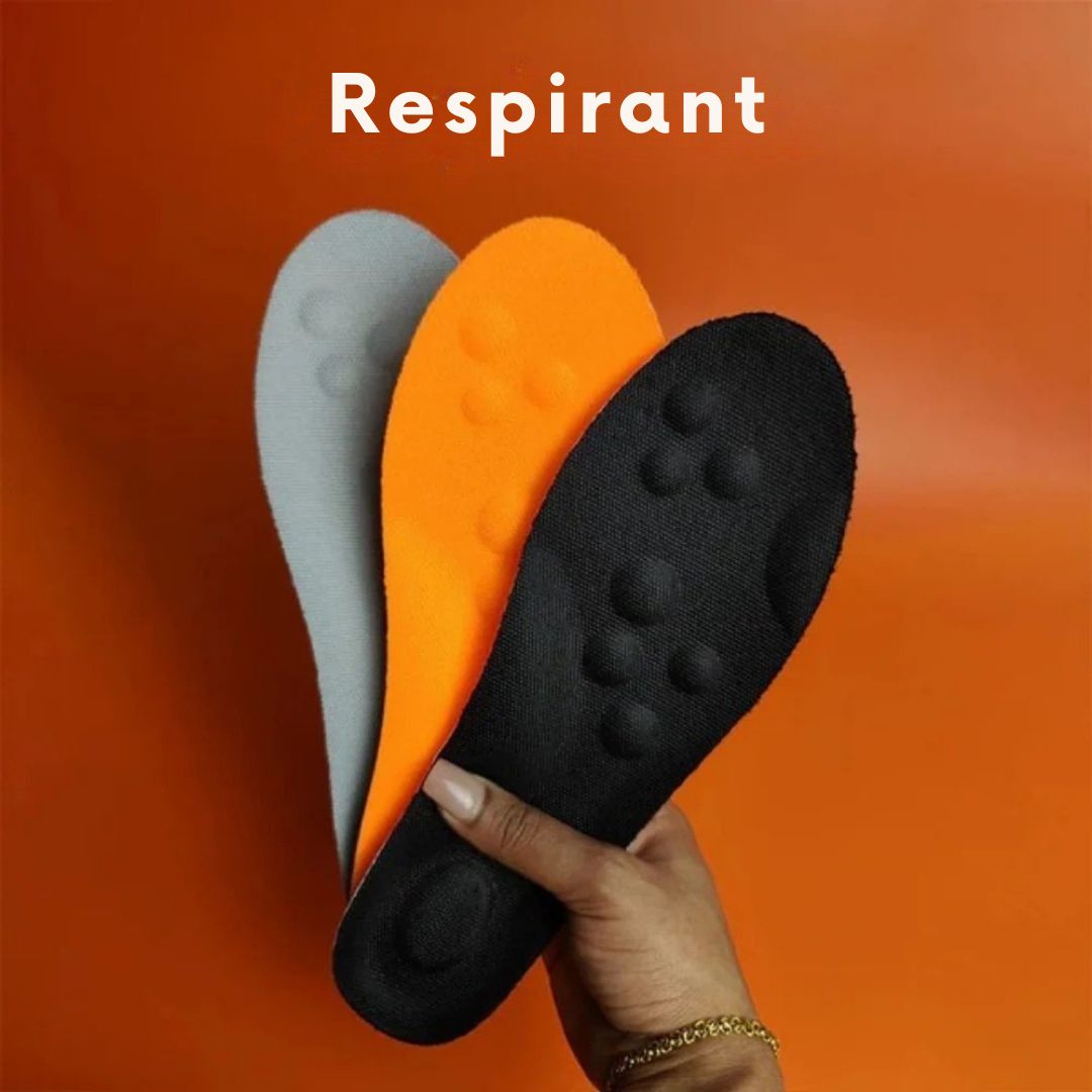 Ces semelles sont conçues pour absorber les chocs et limiter les micro-traumatismes à chaque pas, sans rigidité.